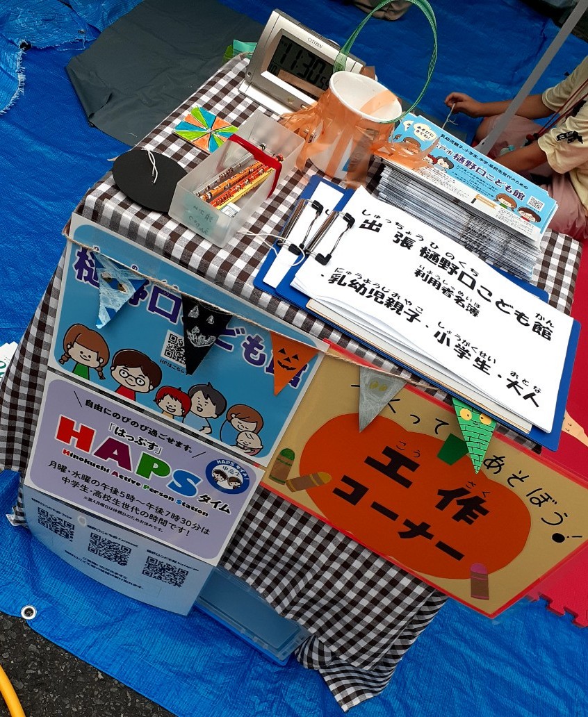 出張樋野口こども館@松戸まつり開催しました 2025年10月15日 開館の様子, イベント 10月4日(土)は松戸まつりに出張してきました! 朝から不安定な天気、松戸駅東口ロータリーに準備しましたが 途中で雨が降ってきて、場所をデッキ下に移動して遊びと工作の提供をしました 「今日は出張樋野口こども館で来ています」の案内に 「どこにありますか?」とか「いつあいていますか?」と質問する方もいて、 チラシを手渡しながら開館時間や場所、イベントの情報を提供させていただきました たくさんの方に樋野口こども館の存在を知ってもらえました FacebookXBlueskyHatenaCopy