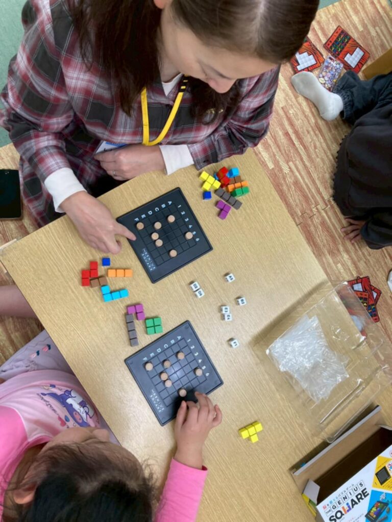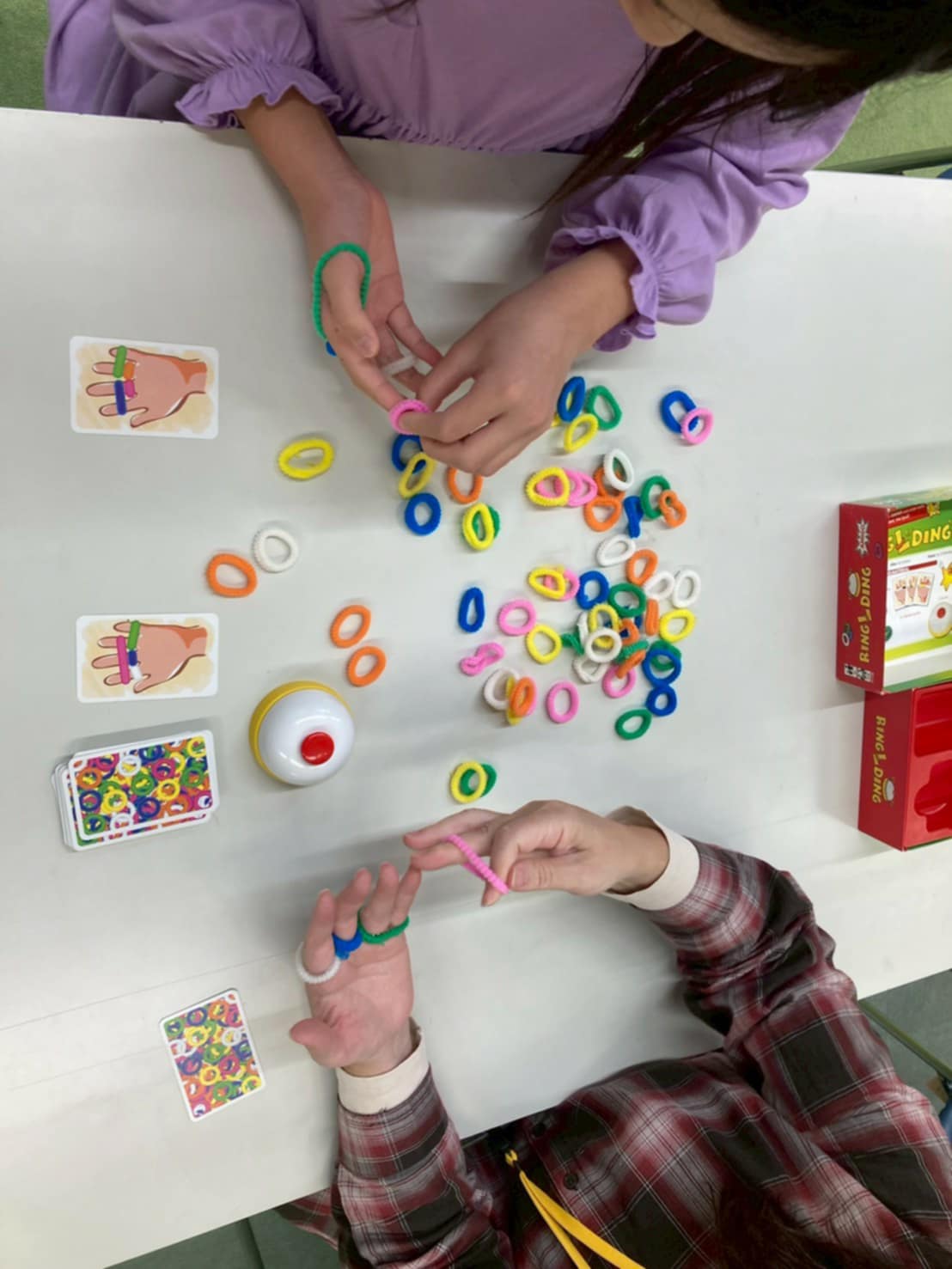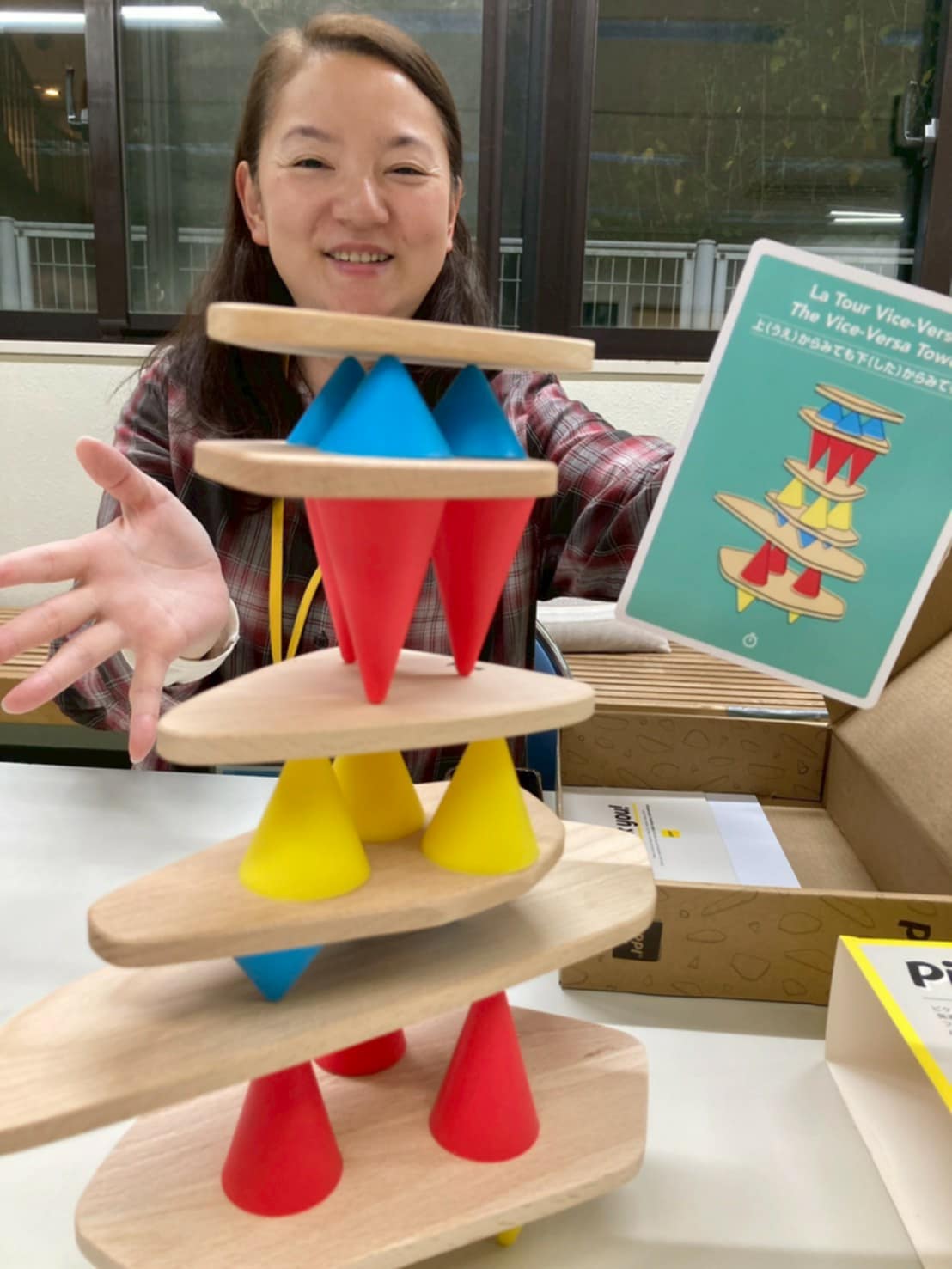 PICS は板とシリコンのカップを積み上げるおもちゃ、いそきちも満面の笑み!