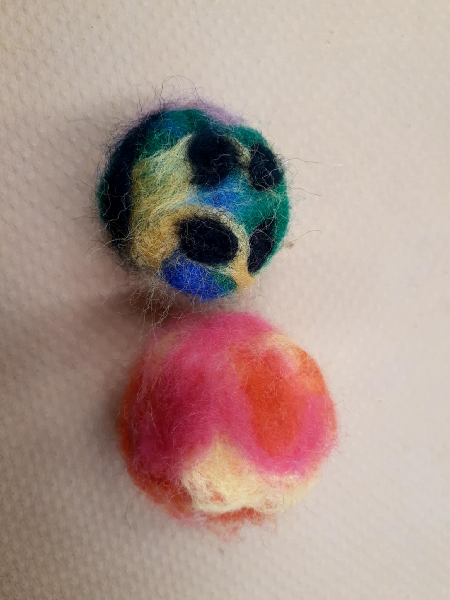 さっそく丸い発泡スチロールに羊毛を巻き付け、ひたすらチクチクチクチク……………