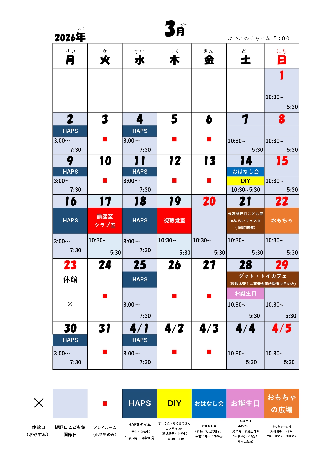 対象:0歳からおおむね18歳までの3月生まれの方(ご家族の方も大歓迎)