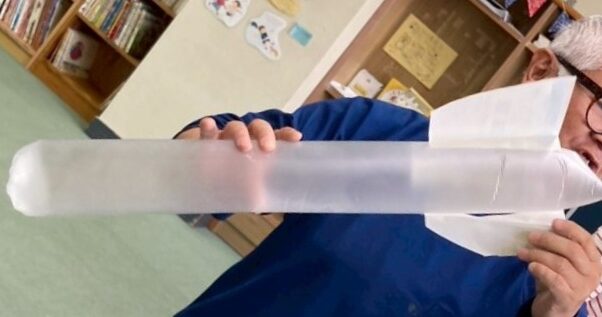 次に傘袋を使って風船ロケットを作りました。