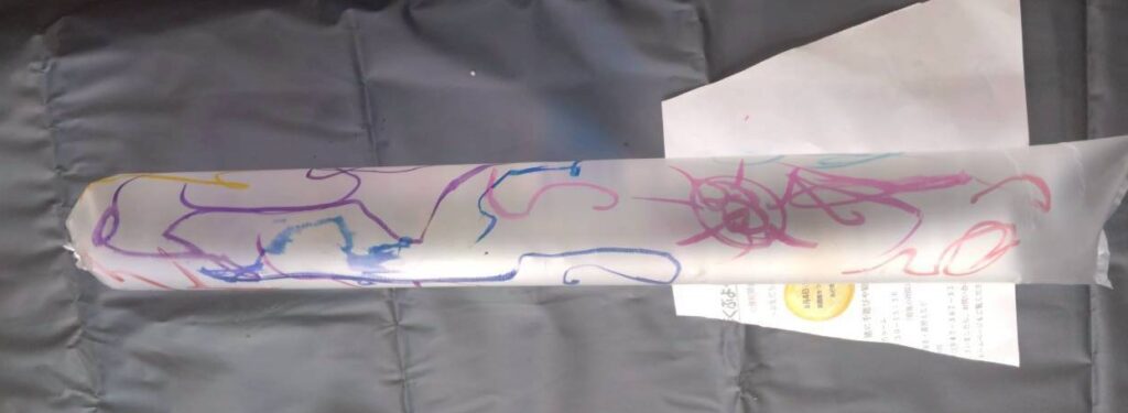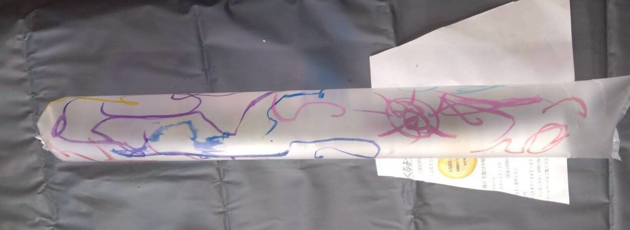 息をたくさん入れて、口をきちんと縛って、羽をつけて、好きなように絵もかきました。